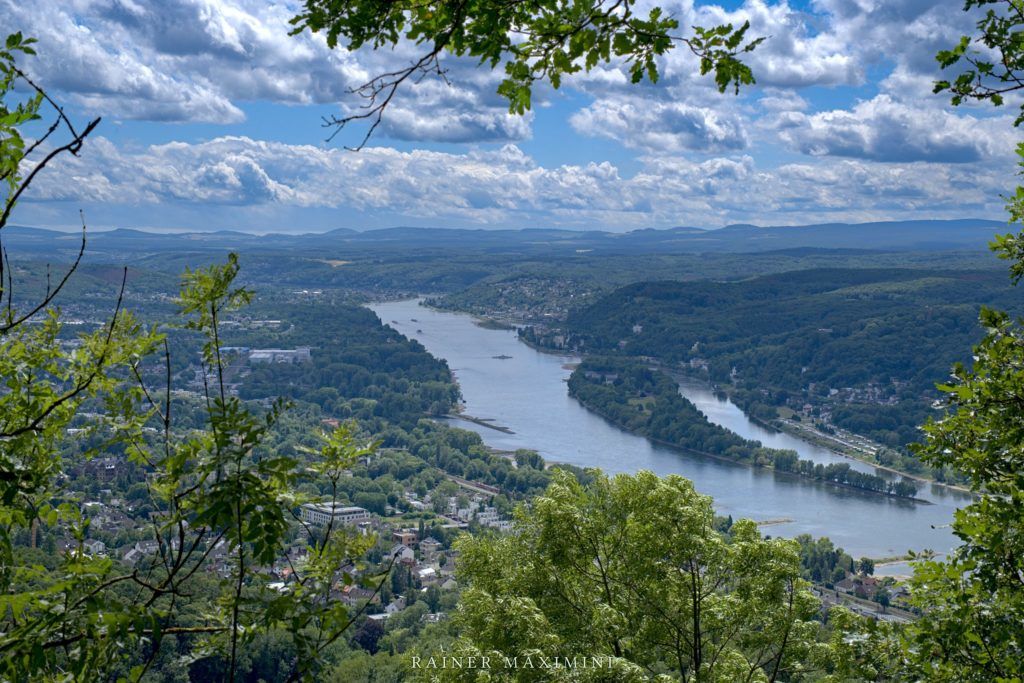 Unterwegs gibt es immer wieder schöne Aussichtspunkte, z.B. zurück blickend auf den Großen Ölberg, den Lohrberg und die Löwenburg, wo wie kurz zuvor noch gewesen waren oder auf den Rhein und die Insel Nonnenwerth. Bei der Wetterlage waren die Wolken besonders intensiv und bedrohlich.