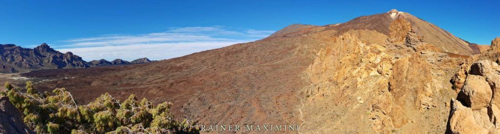 Kaum ein Besucher von Teneriffa wird nicht im Nationalpark Las Cañadas del Teide gewesen sein. Viele steuern dabei von Süden das Besucherzentrum Parador Nacional auf etwa 2.000m Höhe an, von wo aus sich zahlreiche Wanderungen durch die bizarre und kuriose Landschaft beginnen lassen. Der vom Parkplatz aus schnell erreichbare Aussichtspunkt Mirador de la Ruleta bietet einen wunderschönen Blick in die Ucanca-Ebene und auf die Felsformation Roques des García, dessen höchster Fels La Catedral ist.