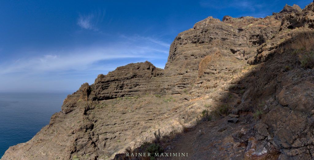 Der nun folgende Pfad durch die Steilwand nach Los Gigantes stellt für geübte Alpinisten kein Problem dar. Man sollte aber auf jeden Fall trittsicher sein und keine Angst vor exponierten Stellen haben. Belohnt wird man mit tollen Aussichten auf die Steilwand sowie auf Los Gigantes.